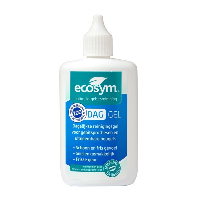 De Ecosym Dagbehandeling Gel is speciaal ontwikkeld voor de dagelijkse reiniging van gebitsprothesen en uitneembare beugels.Deze niet-schurende gel verwijdert effectief bacteriën en voedselresten, waardoor je gebit fris en schoon blijft.De formule is zacht voor het materiaal van je prothese of beugel en zorgt voor een langdurig frisse adem.